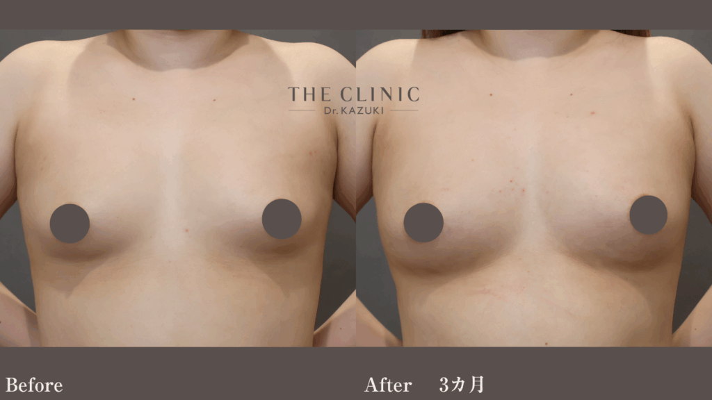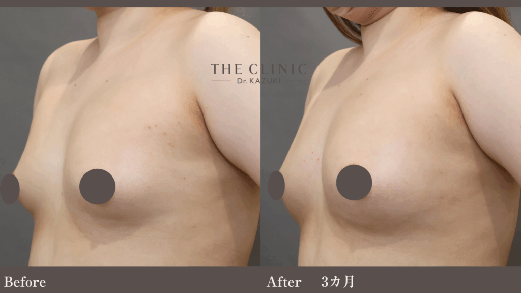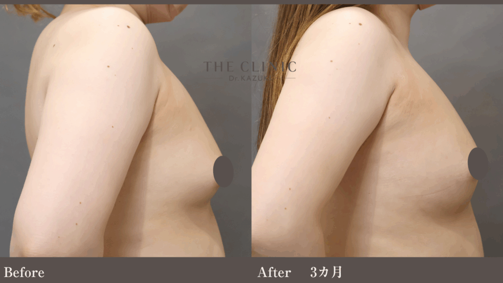 バスト下縁を伸ばして土台を広げると、丸みのある綺麗なバストに仕上がります。リゴトミーの針孔も時間経過で徐々に淡くなり、目立たなくなります。