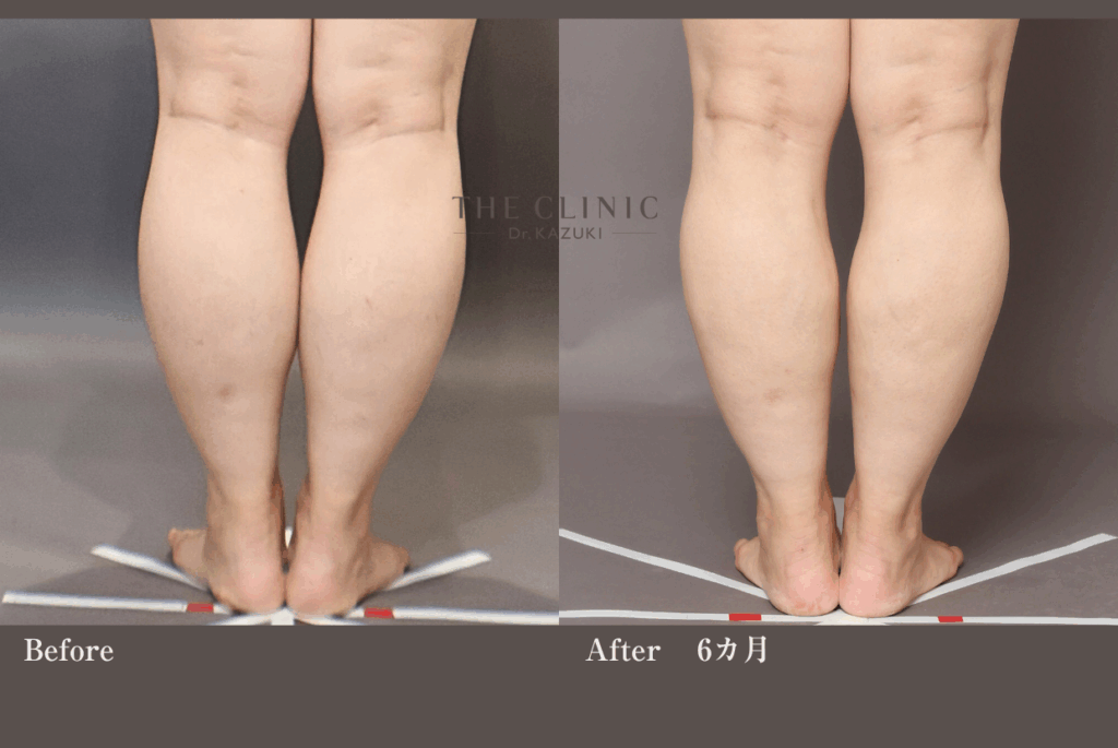 下腿のベイザー脂肪吸引を行っています。脂肪吸引だけでは、細さが出にくい場合にはボツリヌストキシン注射の併用をお勧めします。こちらのゲストの方はボツリヌストキシンの併用は行っていません。