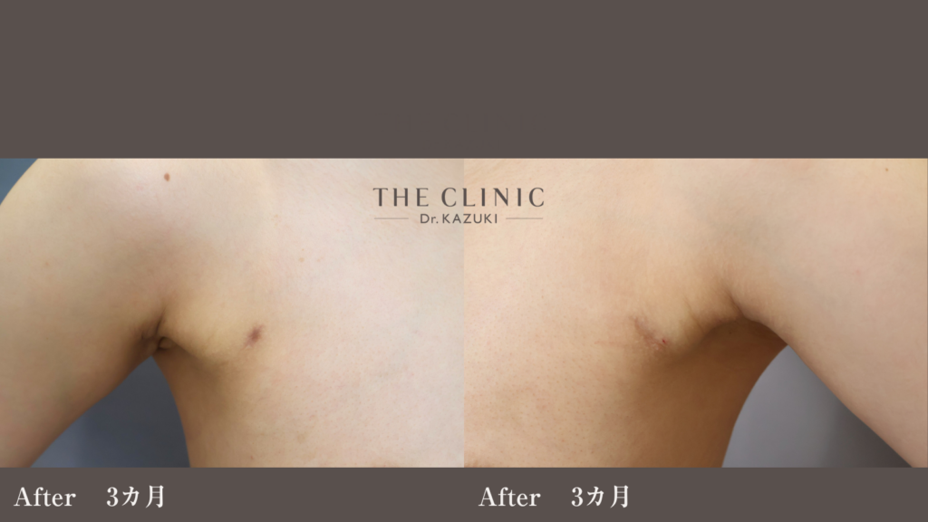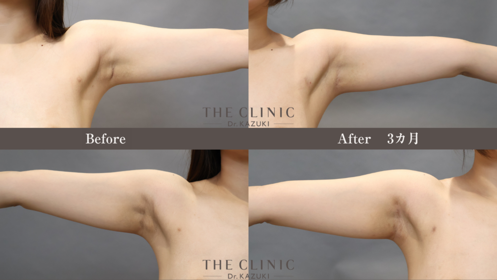 副乳部分に脂肪もしっかりあるため、ベイザー脂肪吸引で除去。皮膚は脇のしわに合わせて切除。