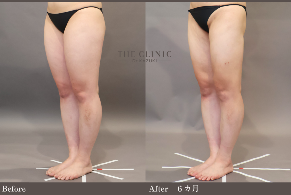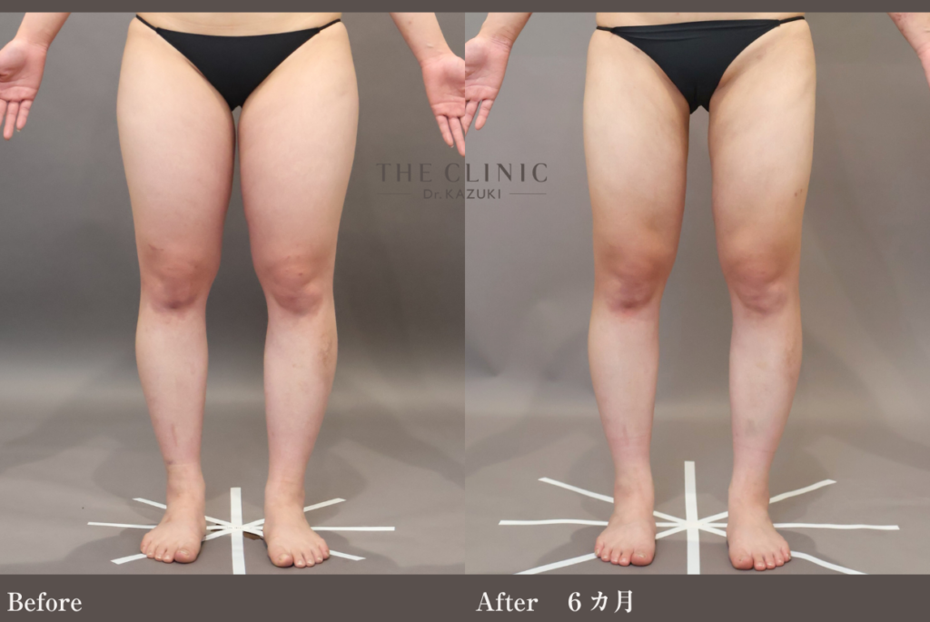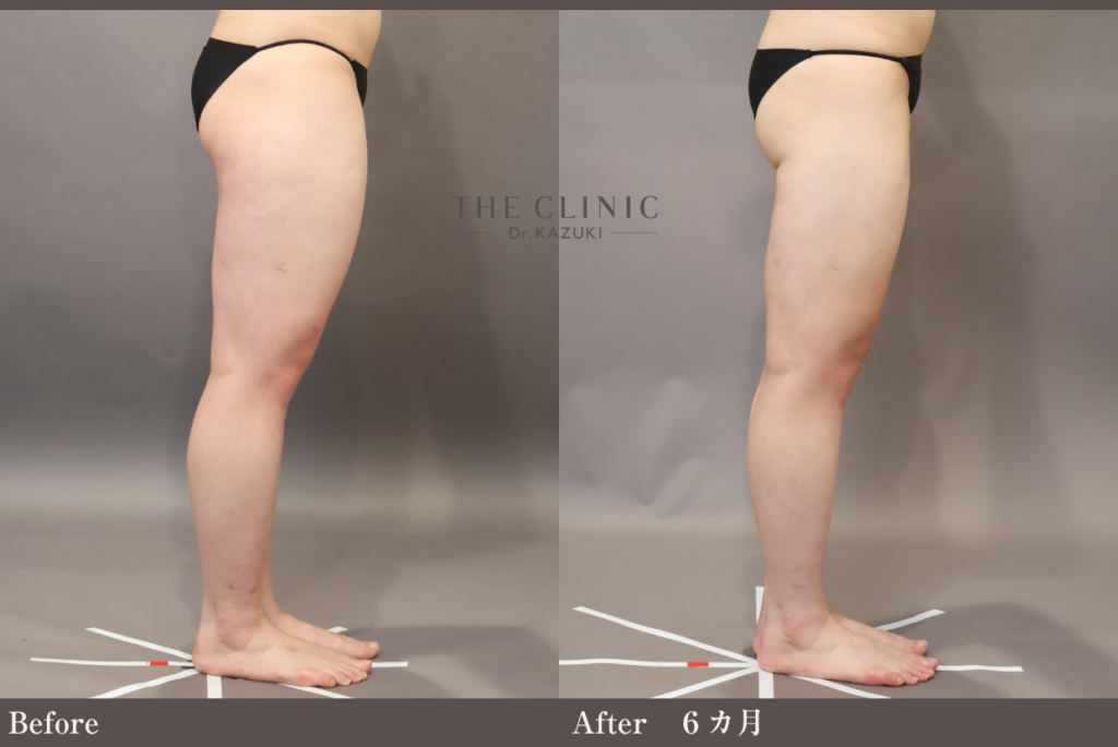 体型、年齢、肌の弾力にもよりますが、太腿 片側1,500ml以上の脂肪吸引が皮膚のたるみ感を感じやすくなる一つの基準になります。