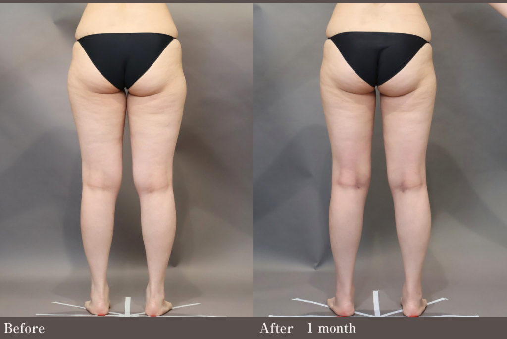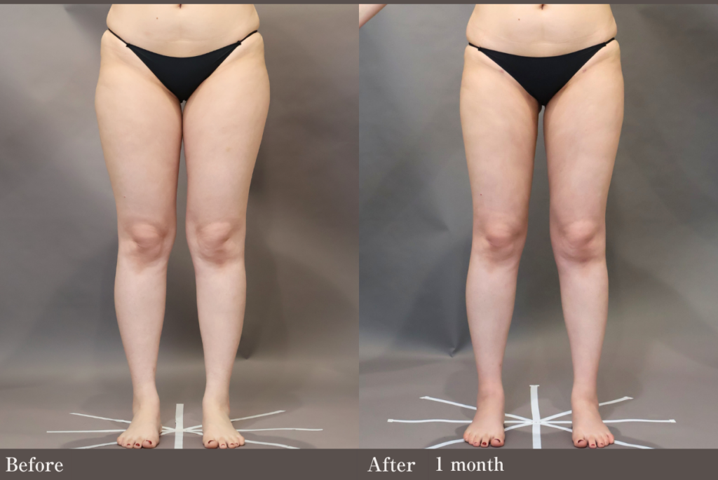 スタッフ施術。大腿全周膝をベイザー+バイブロフィットで脂肪吸引しています。バイブロフィットを用いることで、吸引の際に摩擦による組織の損傷を最小限にできます。3000ml以上の吸引にも関わらず、浮腫み・内出血はかなり抑えることが出来ています。もちろん、翌日から勤務再開しています。