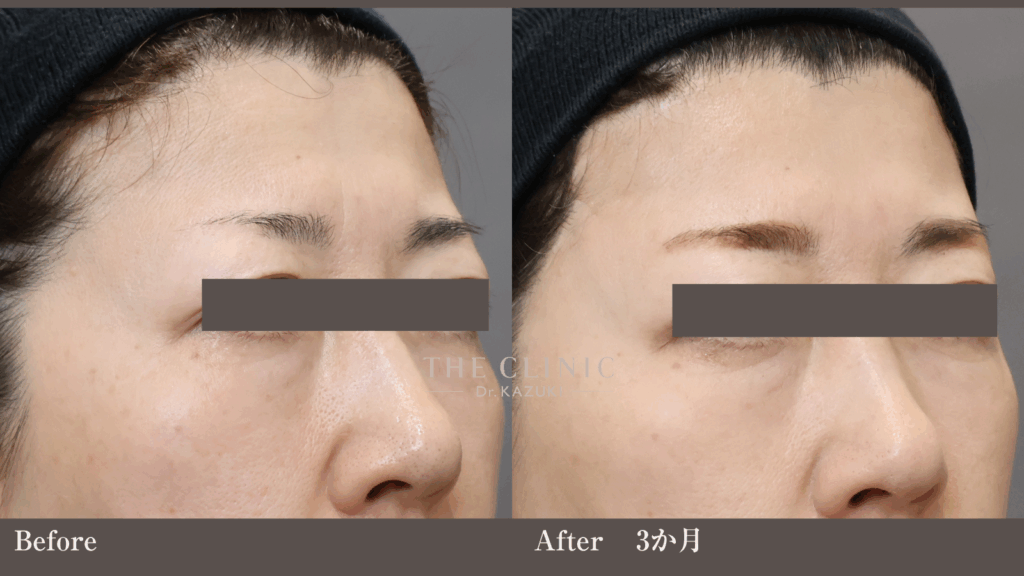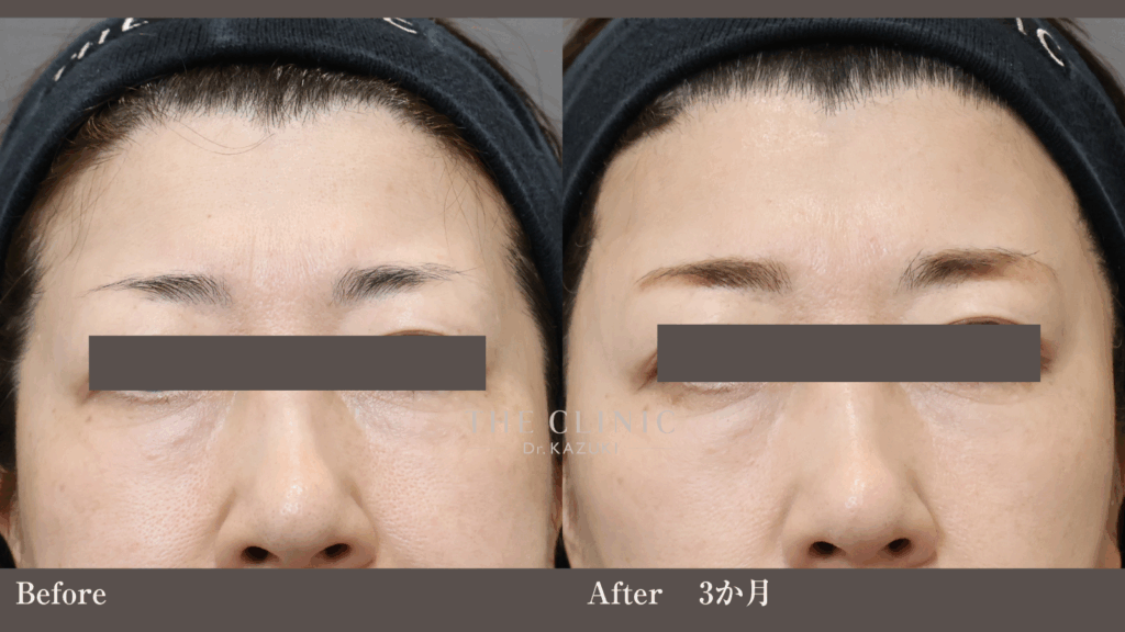 刻まれた皺はなかなか改善が難しいのが実際ではありますが、脂肪注入(CRF/mCRF)により、目立たなくさせることができます。眉間のボトックス注射は必須です。