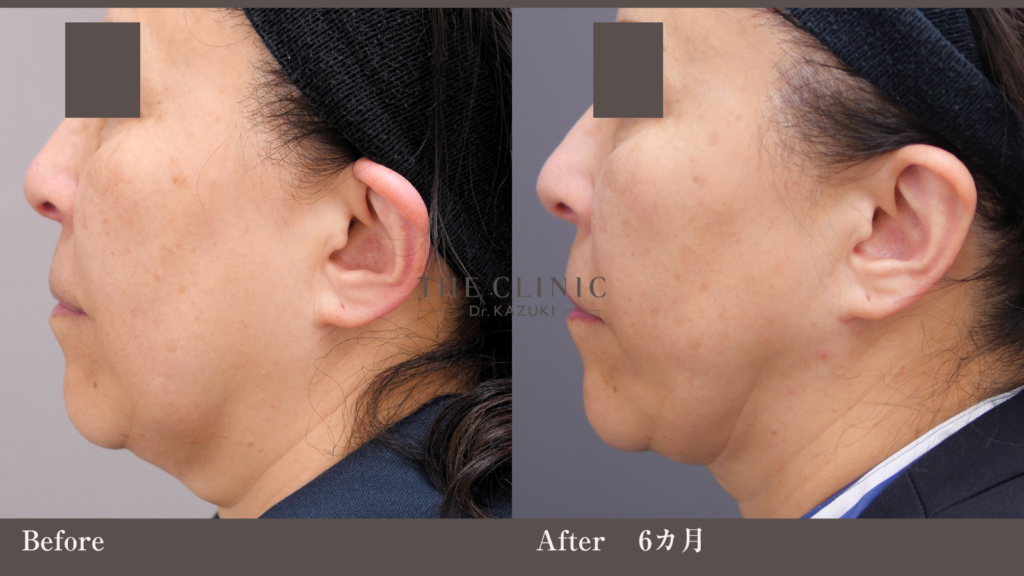 脂肪吸引のみを行うと皮膚だけが垂れ下がり、ダルっとした印象になります。また、顎下は多く取りすぎると皺が深くなったり、新たな皺を生じさせる可能性があるので、時に加減も必要です。