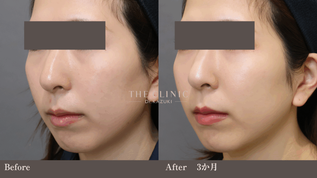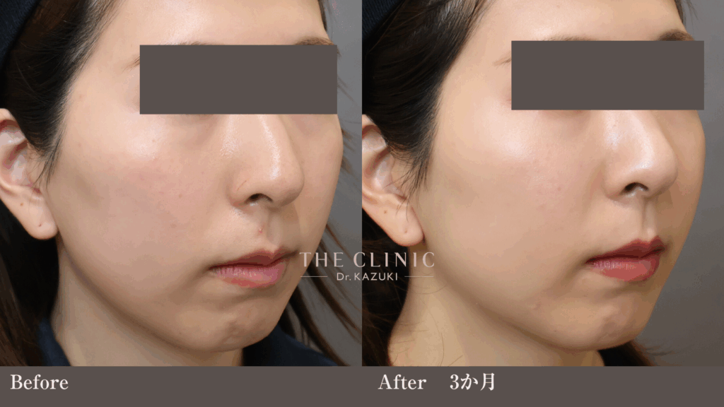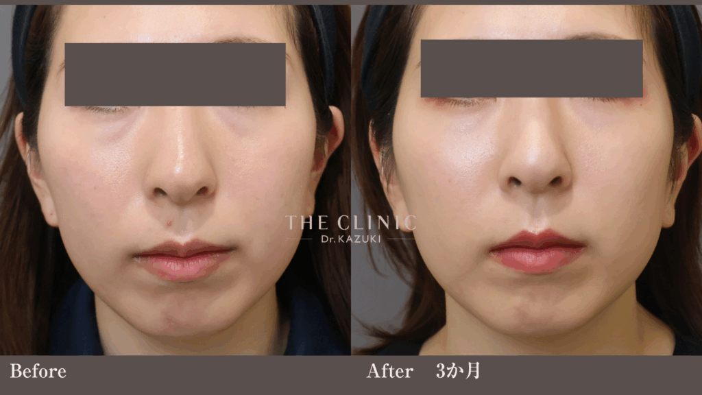 tear trough/ゴルゴラインを埋めつつ、頬の高さを出すと、きれいに光が当たって、中顔面縮小効果があります。