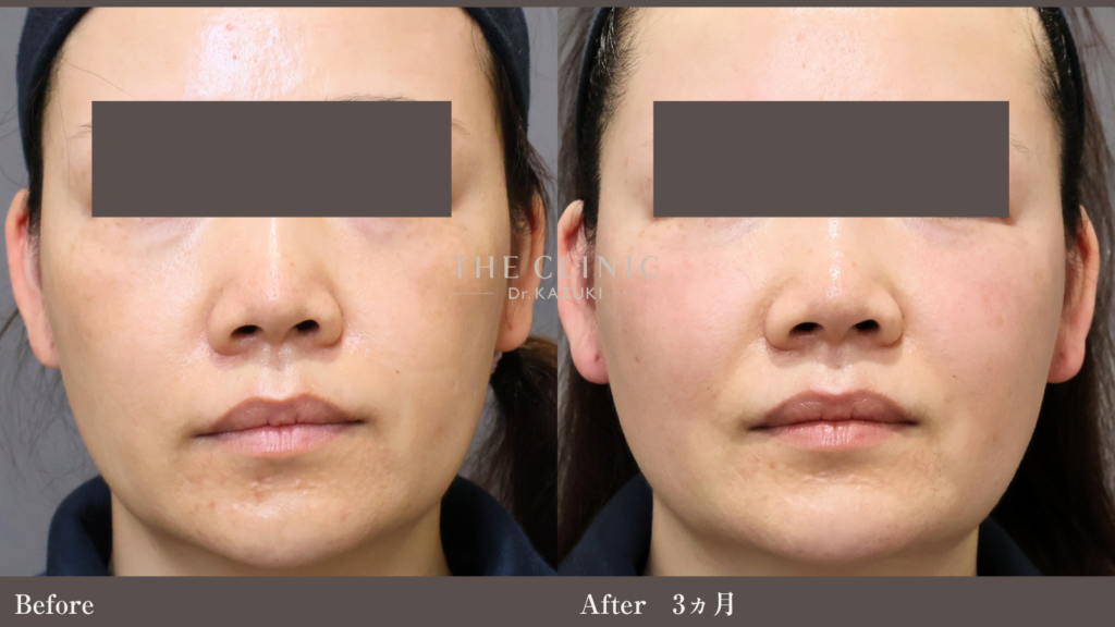 リスク: 左右差やしこりのリスクはゼロではありませんが、解剖学を熟知した医師が、適切な層に適切量を注入することでリスクを最小限に抑えます。