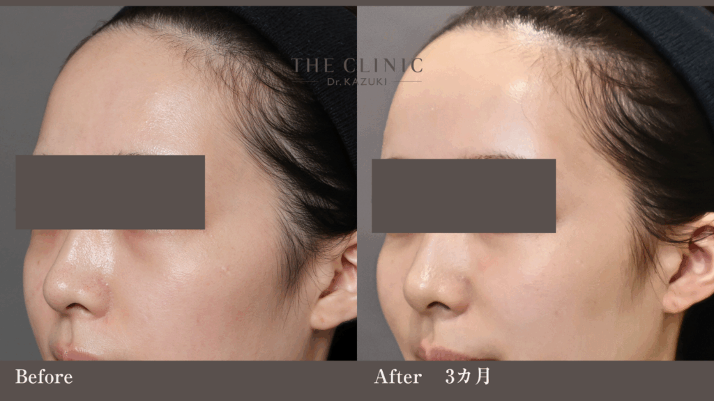 25歳女性 眉上-こめかみを主に埋めるようにCRF注入しています。