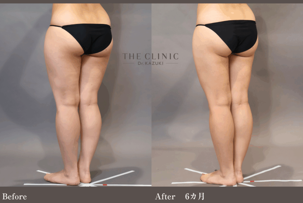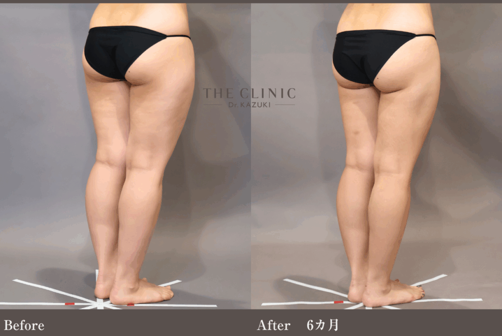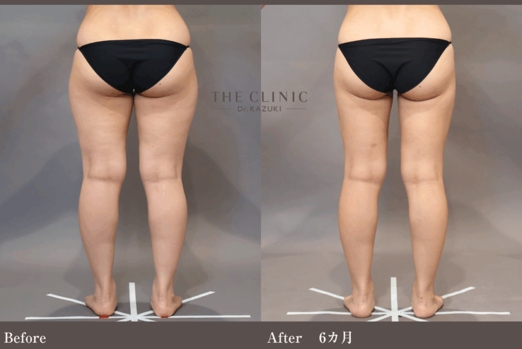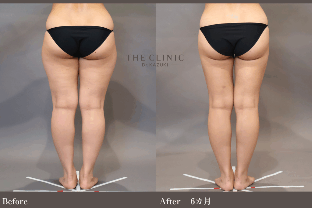 外張り・内側の隙間が綺麗に仕上がりました。膝内も併せて吸引すると、大腿の内側がよりすっきりと仕上がります。