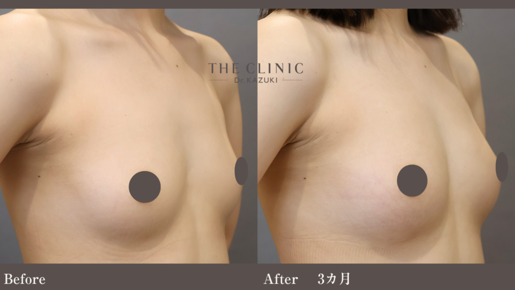 大腿後ろ半周から脂肪吸引を行い、コンデンスリッチ脂肪豊胸を行いました。