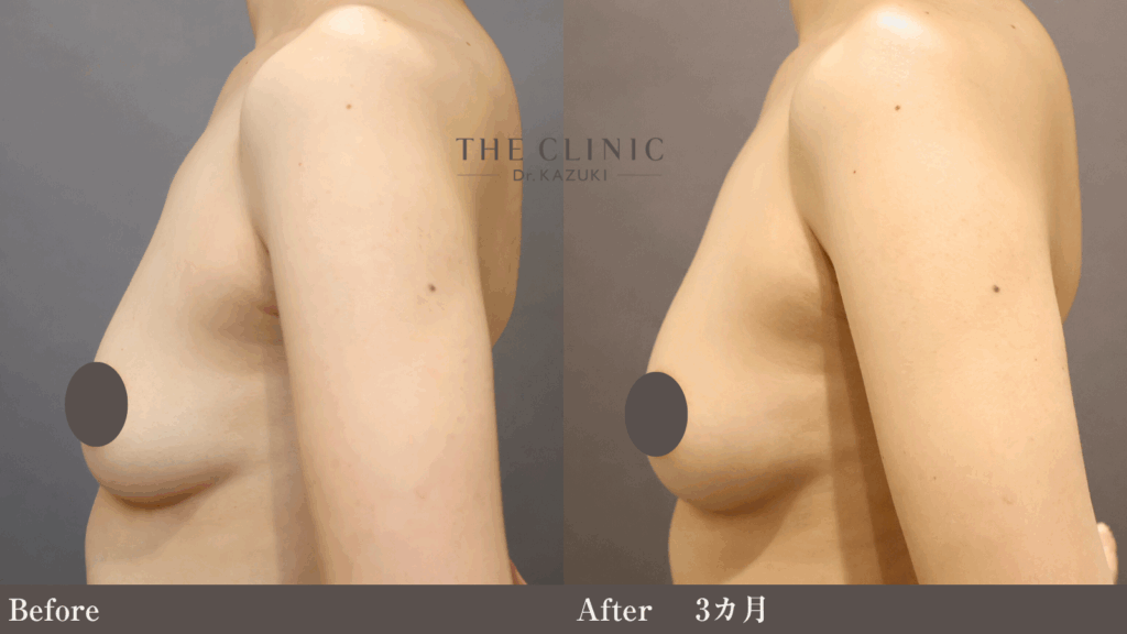 current smoker(10本/日)、大腿後ろ半周・腰からベイザー脂肪吸引を行い、コンデンスリッチ脂肪豊胸を行っています。ご本人もバストアップ効果を実感され、満足されています。