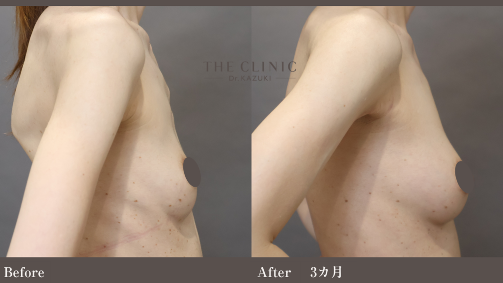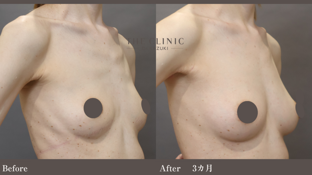 術後の定着を最大限高めるため、3カ月間はバストを強く寄せるブラジャーや、ワイヤーによる圧迫は避けてください。 また、急激な体重減少も定着に影響するため、安定するまでは健やかな食生活を心がけることが大切です。